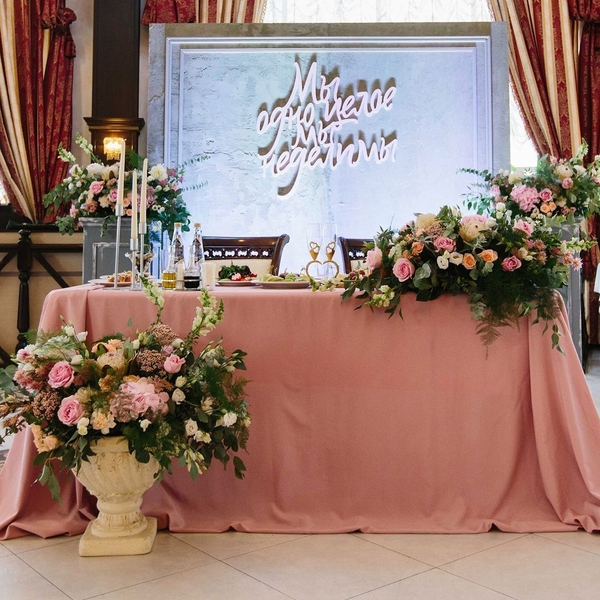 Скатерть прямоугольная на главный стол 350х300 см розовая